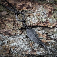 I think of these as the leaves of Yggdrasil. I forge my leafs on Wednesday (Wotan or Odin's day). I have an altar to Odin in my shop. I make offerings of spirits, of intoxicants, and of cedar smoke. I chant into each leaf a request to be connected to the world tree. For this leaf to be a path finder, and a help in navigation between the worlds. As well as a connection to the root of all things. I chant the runes of Odin into each leaf as it's forged, as well as runes of protection. Lastly, I quenched the pendant in beeswax to give it a protective coating, which also gives it the black finish.